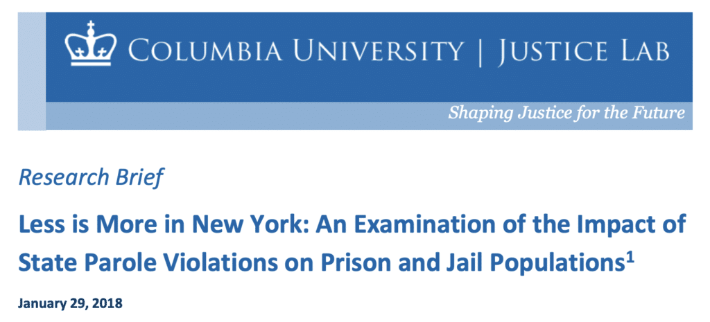 New York Report: Less is More in New York: An Examination of the Impact of State Parole Violations on Prison and Jail Populations.